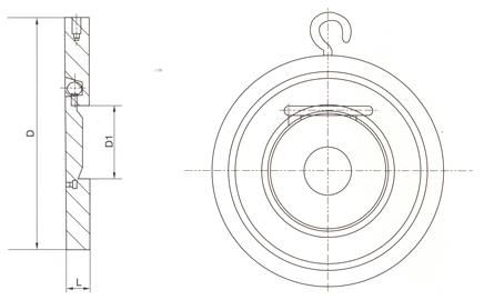 H74H對夾旋啟式止回閥采用內(nèi)裝搖臂旋啟式結構,閥瓣繞轉軸作旋轉運動,靠介質(zhì)流動推開閥瓣介質(zhì)通過,當介質(zhì)倒流時,閥瓣靠自身重量以及倒流介質(zhì)的作用,關閉閥門。